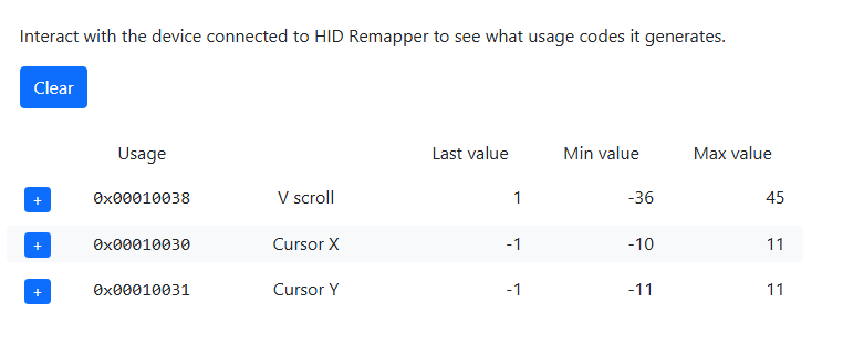 And here’s what the trackball and wheel Min/Max values are: