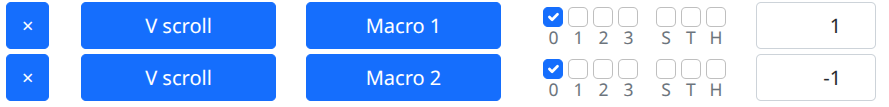 If I assign the same macros to other keys, eg mouse button 4 and 5, they work as intended, it’s just on the scroll, where it only does one of the macros regardless of the V Scroll direction.