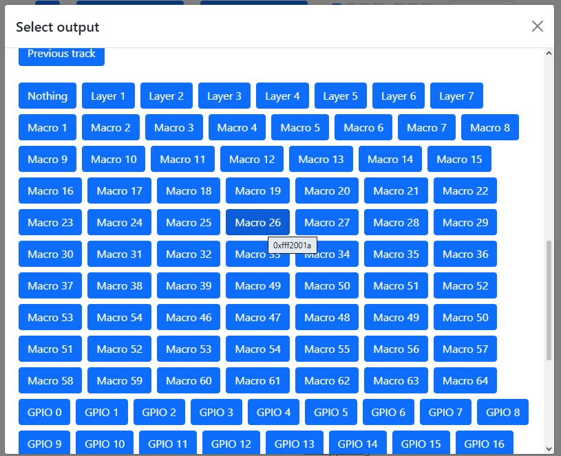 I can create mappings to macros up to 64 (this was an arbitary choice just to try this out, I hope to have more than that when (if!) this can be made to work.
