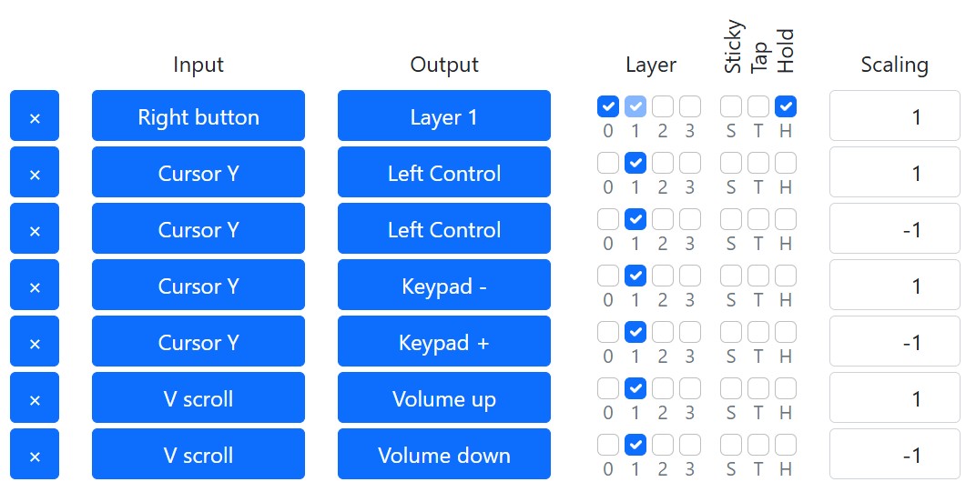 I can remap on a layer “Cursor X”, “Cursor Y” and “Twist to scroll”, but since this is a trackball - whenever I touch the ball it registers CursorX/Y movement and triggers all remaps at the same time.